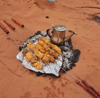 End the evening with a cozy barbecue in the Riad under the stars. The warm fire, rich flavors, and intimate setting make this a night to remember as you unwind and reflect on the day’s discoveries.