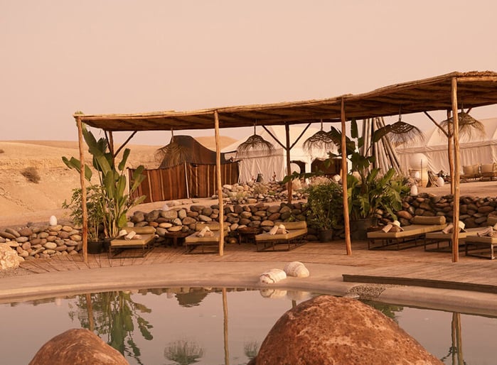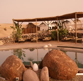 In the afternoon, head to the Agafay Desert, an enchanting destination known for its striking rocky landscape and peaceful atmosphere. Spend the evening at a luxury desert camp, where you’ll enjoy a relaxing night under the stars with fine dining and a tranquil ambiance.